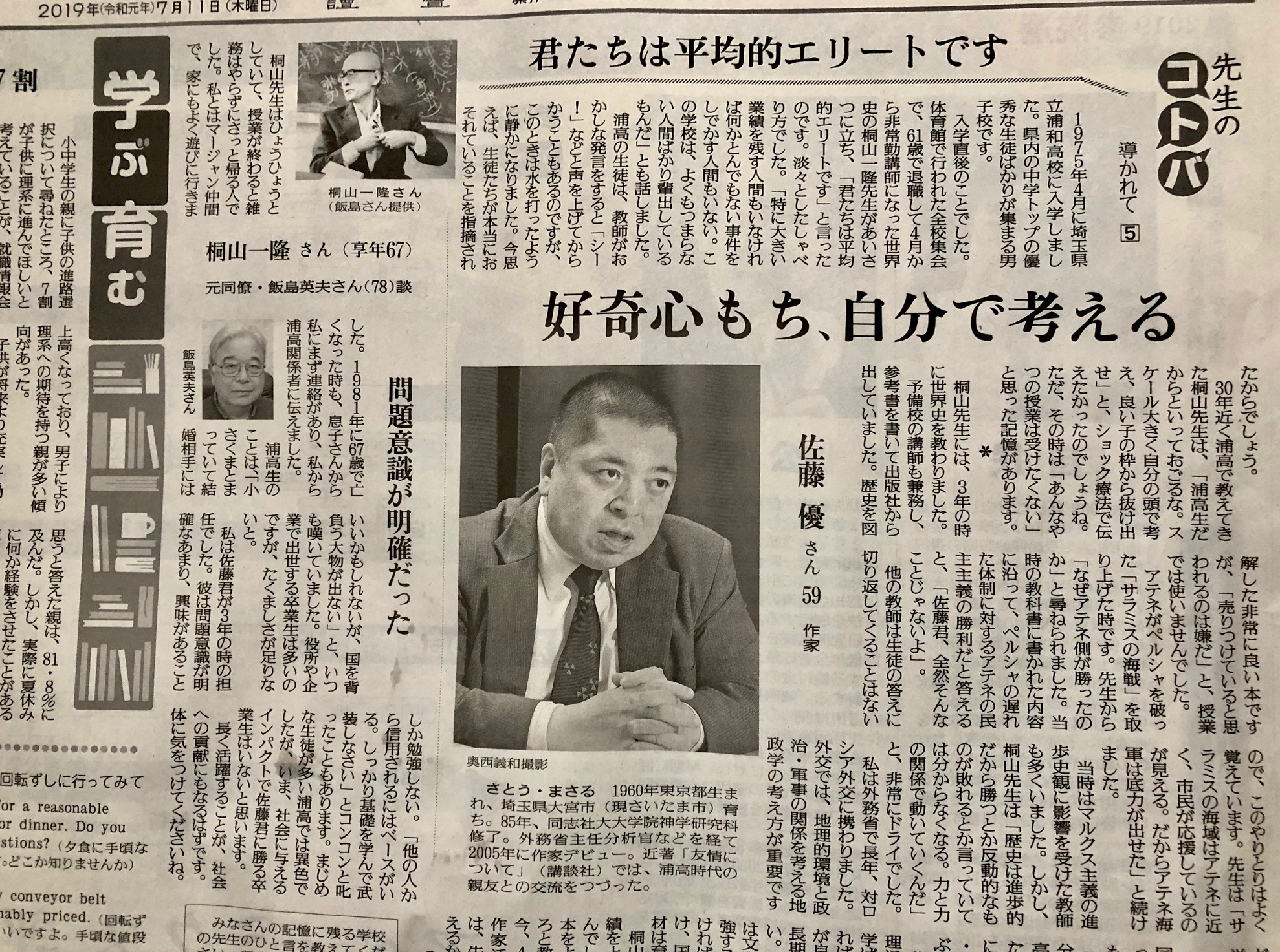 分で考える』に目が留まる。佐藤は高校時代