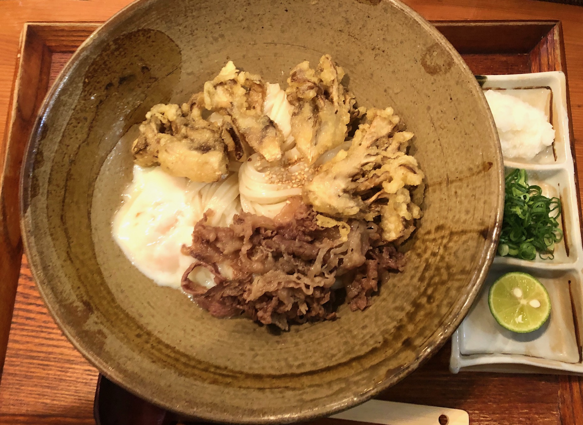 たのは『肉まいたけ天温玉生じょうゆ』。冷たい