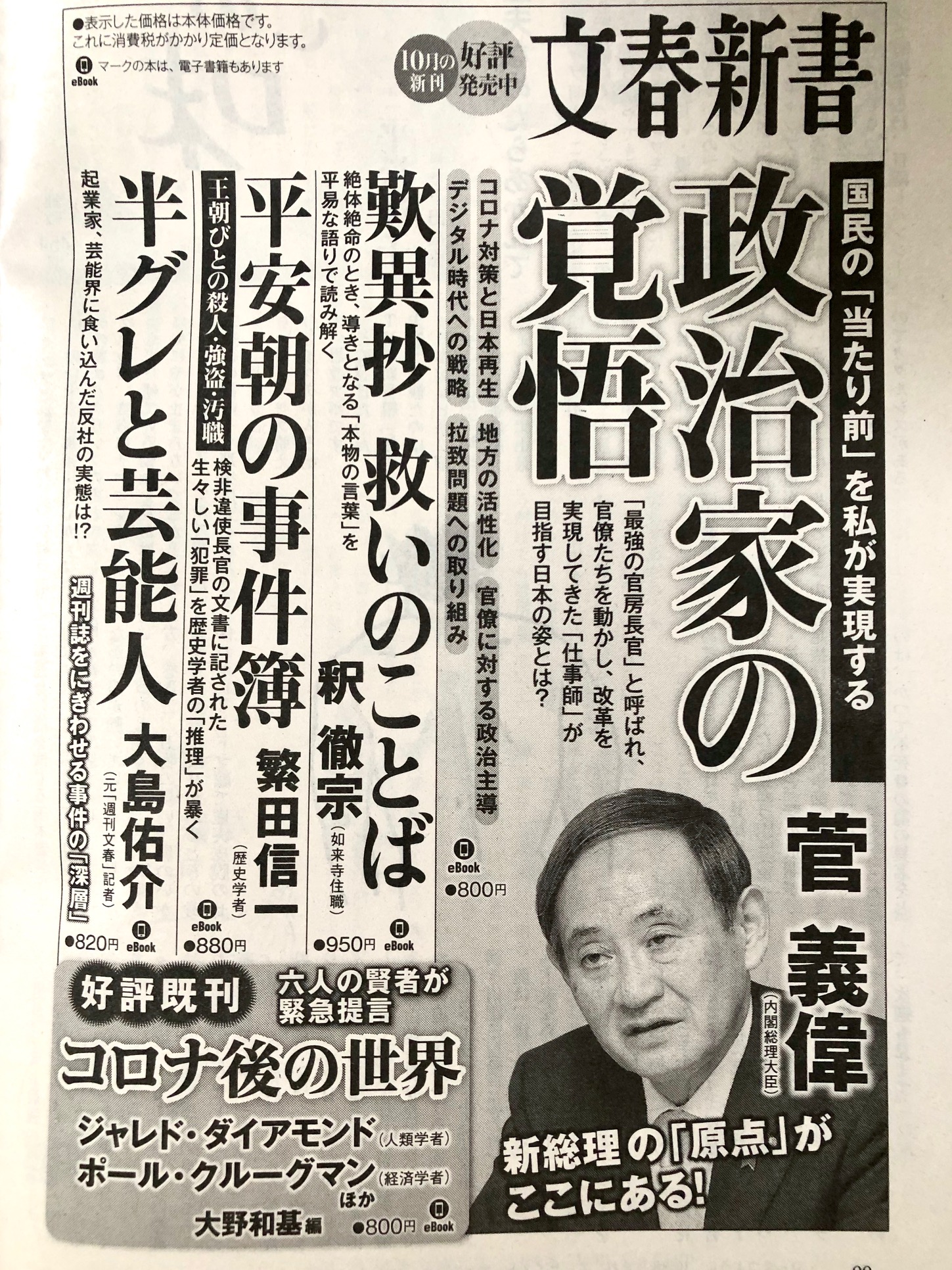 文春新書(10月の新刊)に、菅義偉の【政治家