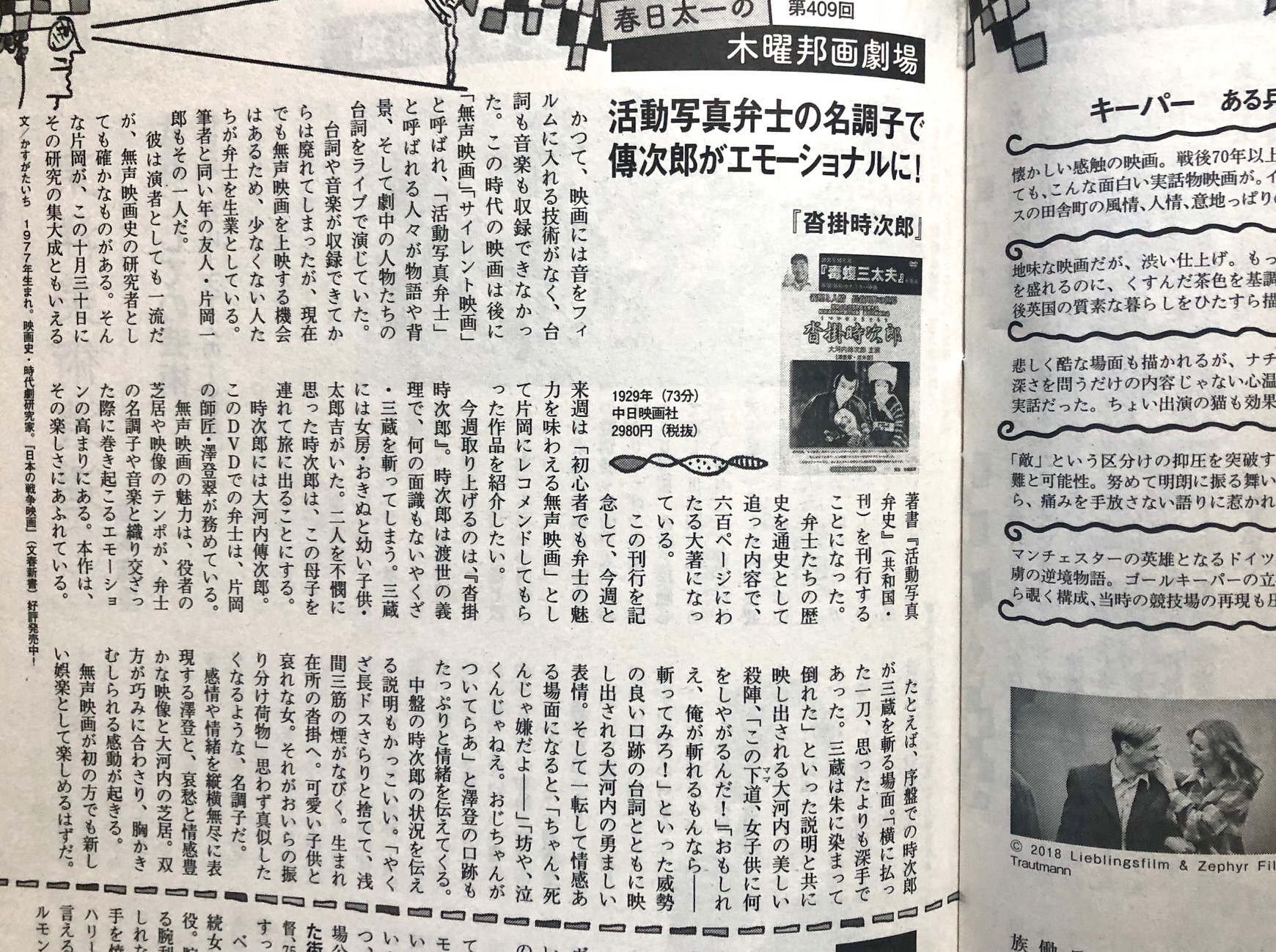 週刊文春・今週号の【木曜邦画劇場】、活動写真