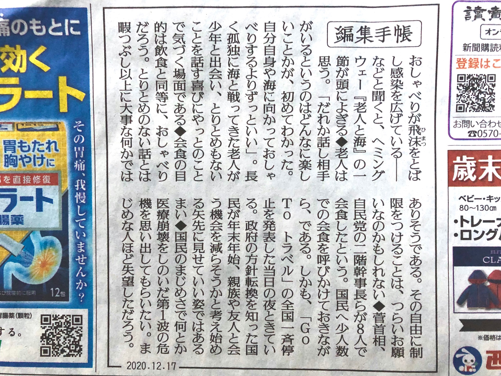 読売新聞・朝刊『編集手帳』より 菅首相、二階
